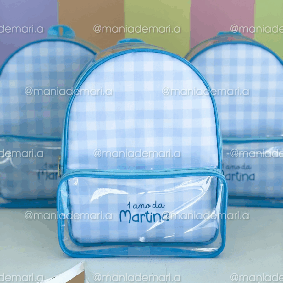 Frente personalizada e corpo inteiro no plástico cristal com bolso que tem profundidade.