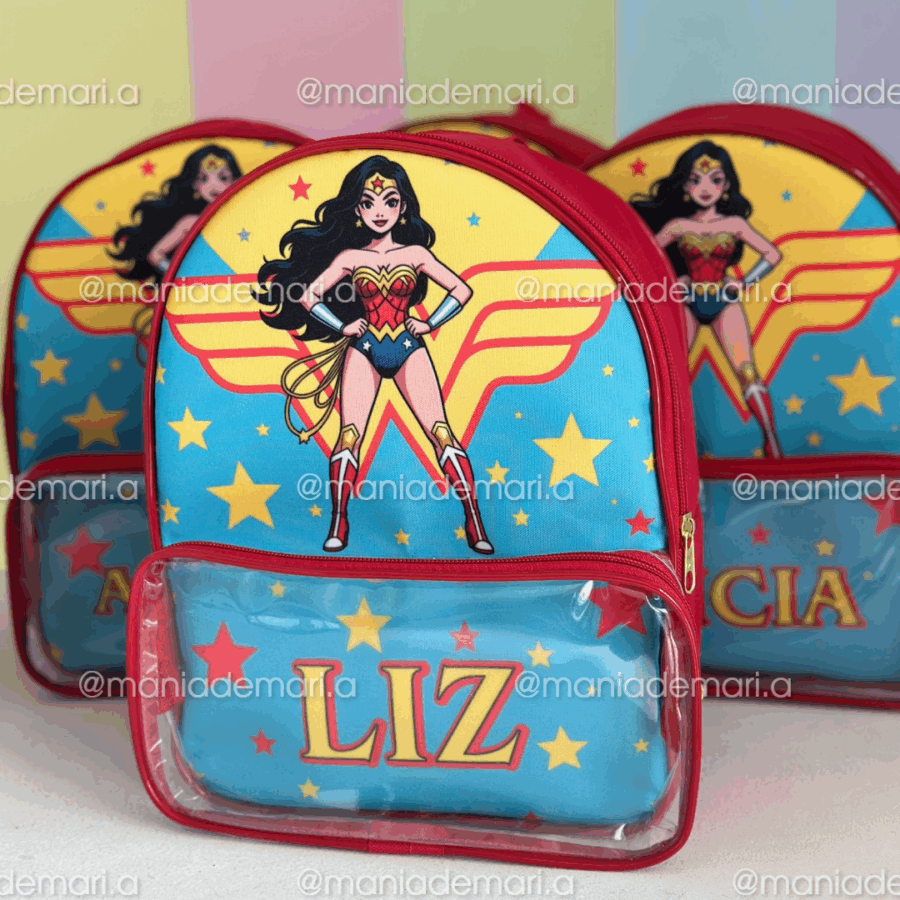 Frente personalizada e corpo inteiro no nylon de uma única cor possui bolso que tem profundidade.